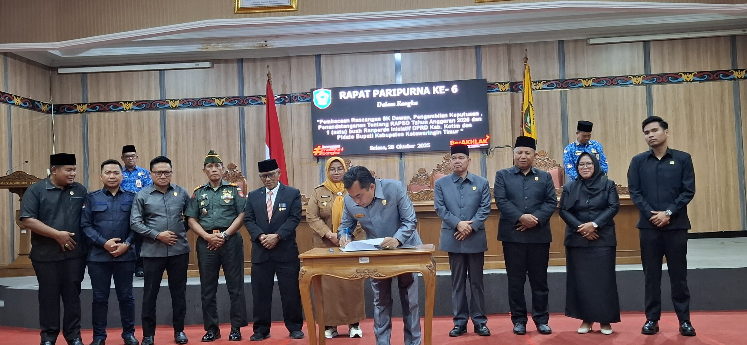 SAMPIT,RAKYATKALTENG.com-Anggaran Pendapatan Belanja Daerah (APBD) Kabupaten Kotawaringin Timur (Kotim) tahun 2026 disepakati dan disahkan bersama antara DPRD dan Bupati Kotim (28/10).