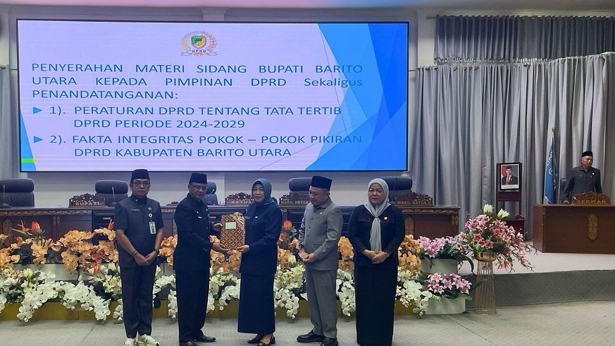 Rakyatkalteng, Muara Teweh – Dalam pelaksanaan rapat paripurna DPRD Kabupaten Barito Utara, yang berlangsung di ruang rapat paripurna DPRD setempat, Senin (14/4), Pj Bupati Barito Utara, Drs Muhlis, melalui Pj Sekretaris Daerah (Sekda) Drs Jufriansyah sampaikan pidato pengantar Laporan Keterangan Pertanggungjawaban (LKPJ) Tahun Anggaran 2024.